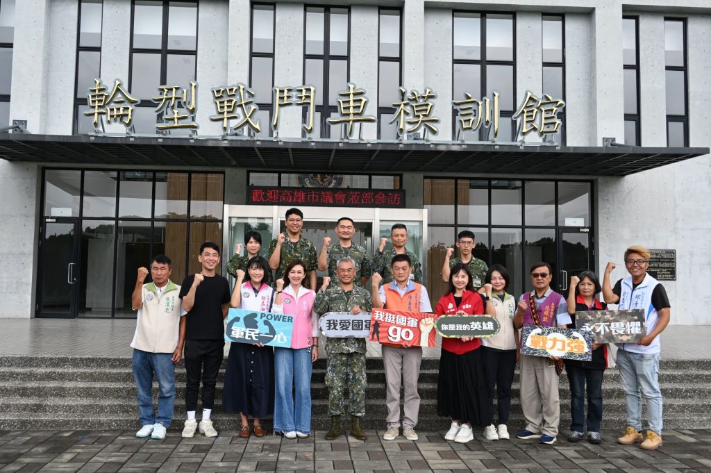 高雄市議會一日由陳善慧議員率隊前往陸軍步兵訓練指揮部參訪及慰勞,並實地模擬操作戰鬥車及卅機砲射擊,同型的四位女性議員紛紛在模擬射擊比賽中奪下好成績。