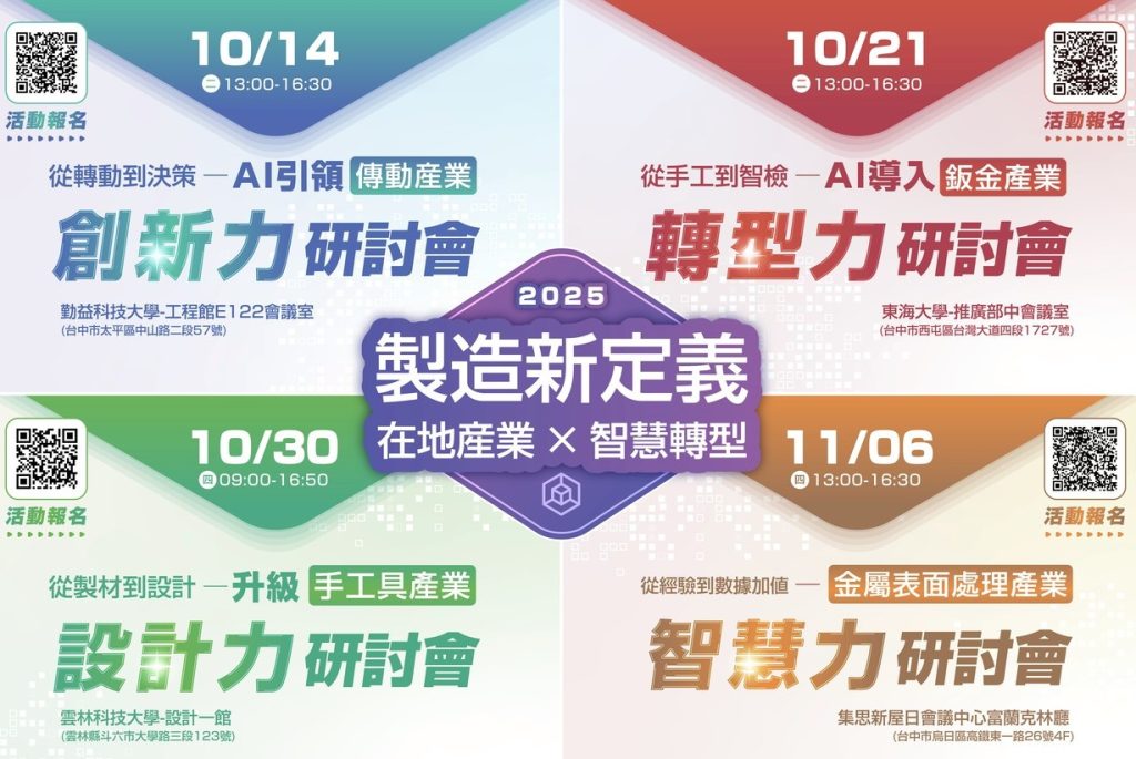 四場研討會將串聯政策、技術與市場,從痛點直擊到解方落地,為產業提供突破困境的實際路徑。誠摯邀請各界先進、企業與技術人員報名參與,共同推動在地產業邁向智慧與永續,攜手定義屬於臺灣的製造新未來。