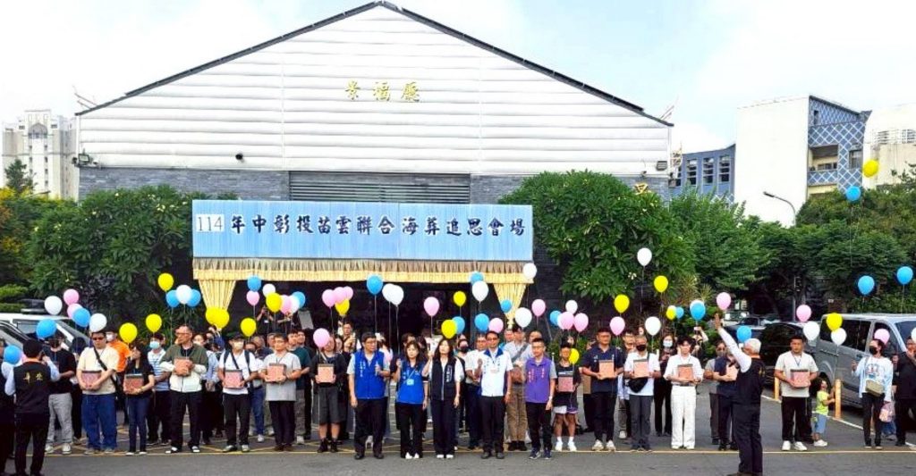 生管處說,中彰投苗雲聯合海葬上午在北區崇德館景福廳進行追思祈福,家屬手持象徵愛與思念延續不息的電子蠟燭,傳達對逝者的懷念與哀悼;並在追思會場外施放寫滿祝福話語的環保氣球,寄託無盡心意。隨後家屬乘車前往梧棲漁港,將親人骨灰拋撒入海,並撒上鮮花,送親人走完最後一程。十九位先行者在淡雅花香及家屬溫柔祈語中,於梧棲漁港外海瀟灑離航,圓滿遺願。