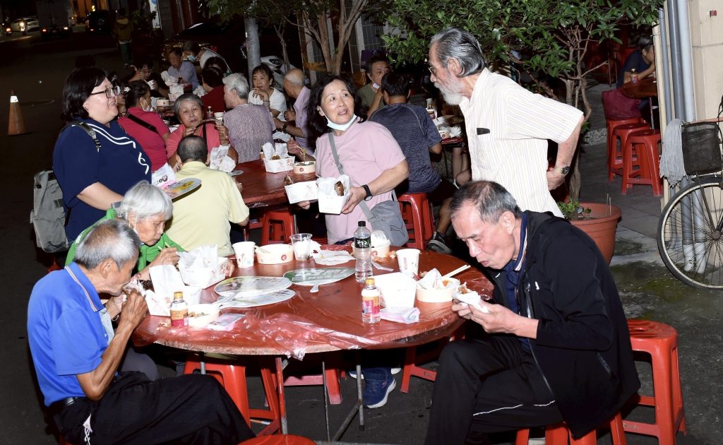 新興區建華里在同愛街里長服務處前辦理中秋晚會活動,近三百名鄉親踴躍參加,現場有吃有玩,大家閒話家常,聯絡情感,也凝聚社區向心力。(記者許正雄攝)