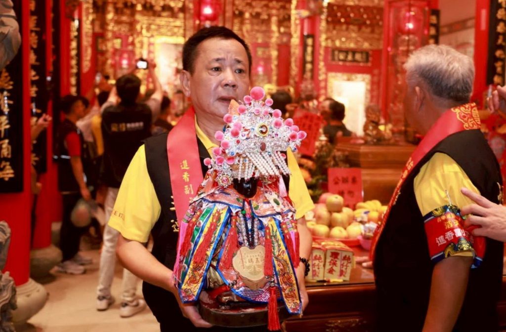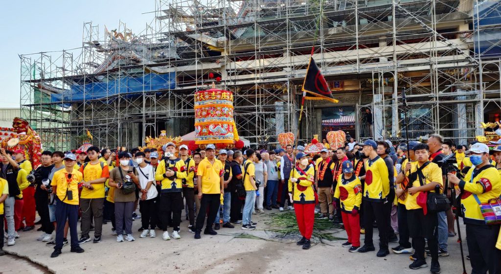 五日清晨五時三十分,往北港進香的二媽、三媽 四媽 蓬萊媽,由副主任委員蔡棟樑、陳金柱、總幹事李家霖、前立委蔡壁如等人從神龕內請出,然後傳遞入神轎內安座後舉行團拜儀式,此時廟內鐘鼓急促作響,信徒們情緒開始沸騰,整個儀式莊嚴隆重,吸引潮水般民眾,一波接一波的湧入廟埕。