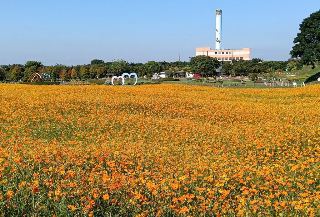 陳大田說,后里環保公園位於后里區堤防路北側,占地達十七公頃,園內設有林蔭步道、廣闊草坡、寵物專區與完善的休閒設施,是假日散步、野餐、放風箏與親子同遊的好去處,園內除黃波斯菊外,落羽松林也悄然轉色,金黃與橘紅交織如畫,構築出浪漫的「雙重秋色」。在同一場域中同時欣賞兩種截然不同卻同樣迷人的秋日風情,讓民眾彷彿置身童話畫境。