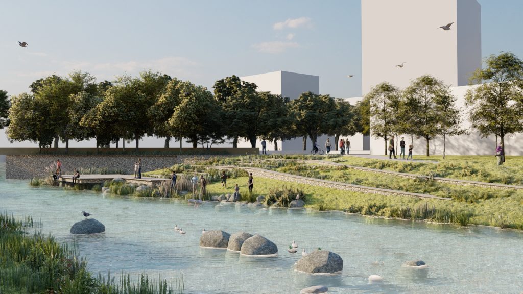 台中市大智排水位於東區、南區及大里區交界,是台中市重要區的域排水系統,其水環境營造攸關城市發展與宜居品質。導入NBS(自然為本解決方案)與LID(低衝擊開發)工法,透過植栽、生態鋪面及保留自然河岸,提升都市防洪韌性。減量傳統結構堤防,增設親水平台、活動步道及休憩設施。