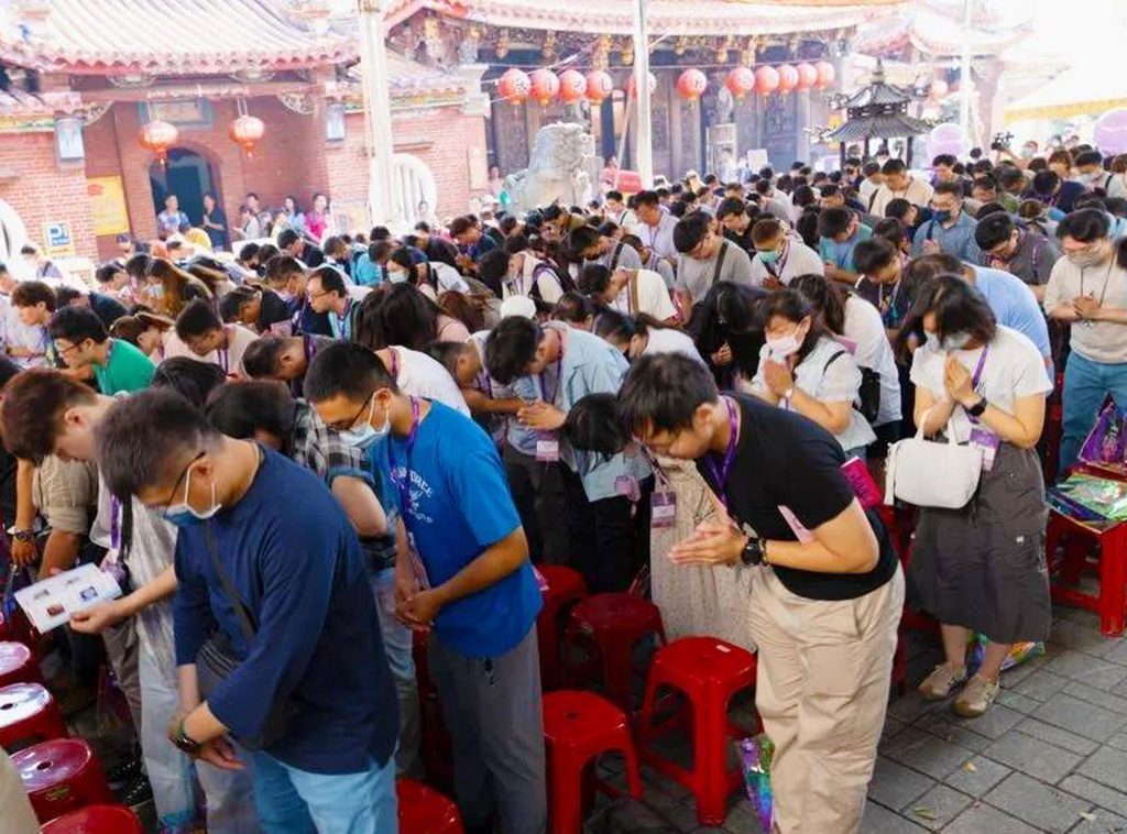 國定三級古蹟台中市樂成宮「月老星君」,名列三大全台最靈驗月老廟,每一年都會在月老生日舉行牽紅線的活動,今年吸引四百名單身男女參加,今年與台灣精品甜點品牌合作,參加者還有月老加持的「金磚甜點」可拿,意外爆紅。