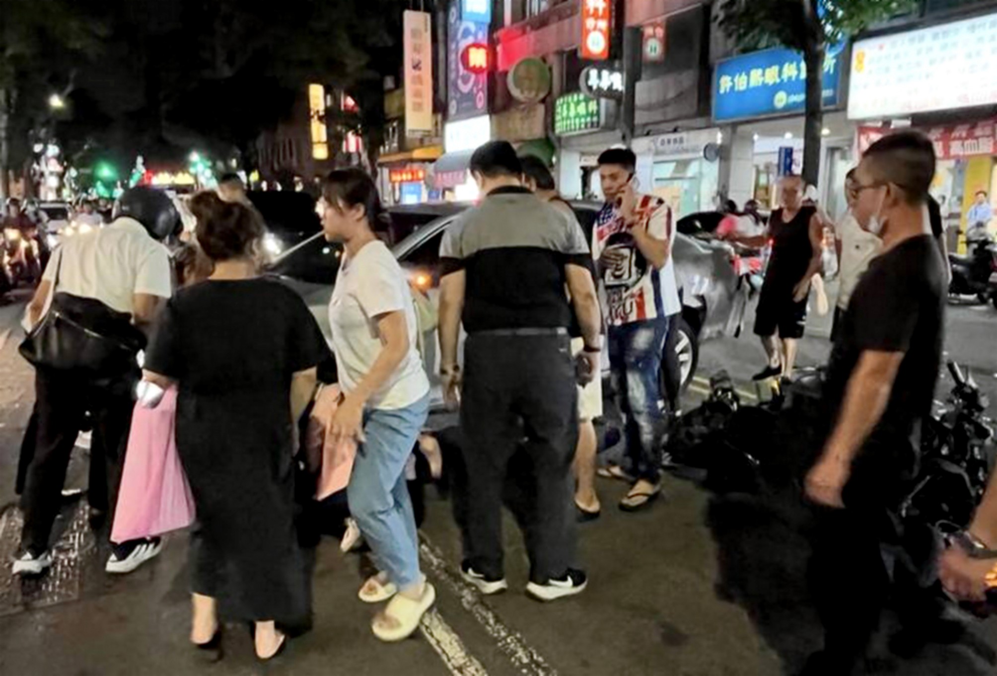 台中市東興路十七日晚發生一輛轎車突然「鬼切」迴轉,造成後方直行機車騎士閃避不及,連人帶車被捲入車底受困,情況危急,約十多名路人衝上前合力抬車,順利將騎士救出送醫,幸無生命危險,英勇畫面曝光後,網友紛紛留言大讚「這才是台灣最美風景」。
