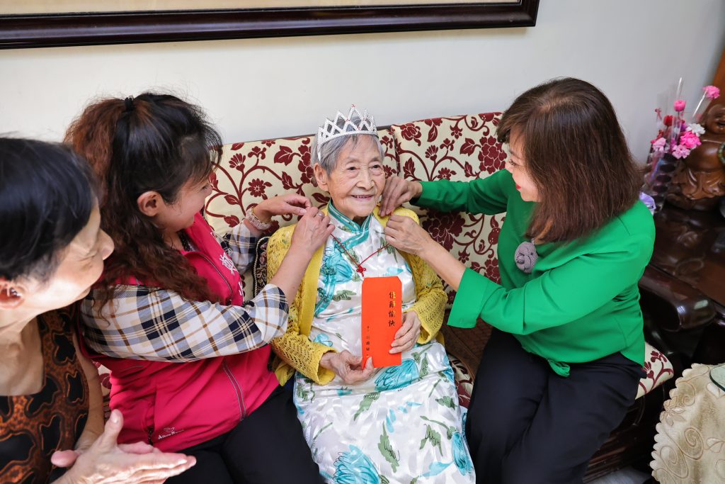 邱佩琳表示,截至一一四年九月底,基隆市共有一百二十三位百歲人瑞,重陽節前夕特別到府探訪,也安排切壽桃儀式,象徵福壽綿延,祝福全市長輩健康平安、家庭和樂。她強調,長者是城市的珍寶,每位人瑞的故事都是基隆最寶貴的歷史記憶。