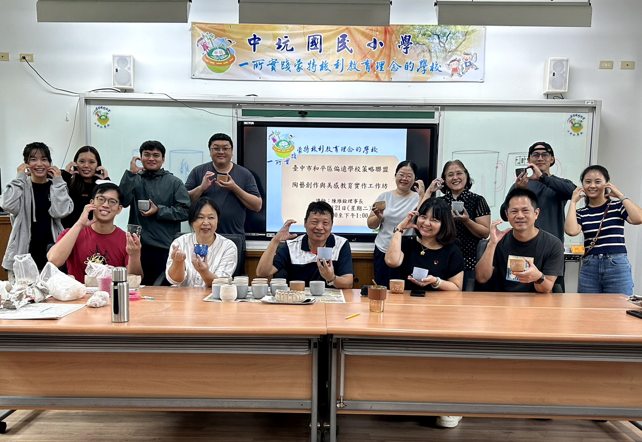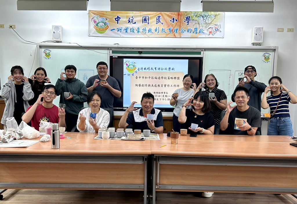 台中市和平區中坑國小辦理教育部國民及學前教育署及台中市教育局補助「一一四學年度第一學期偏遠地區學校及非山非市學校整合性計畫」,二十一日邀請沙轆窯陶藝家陳維銓蒞臨指導,和平區教師難得有機會齊聚一堂,一起捏陶與動手手作創意陶杯並且做校務交流。