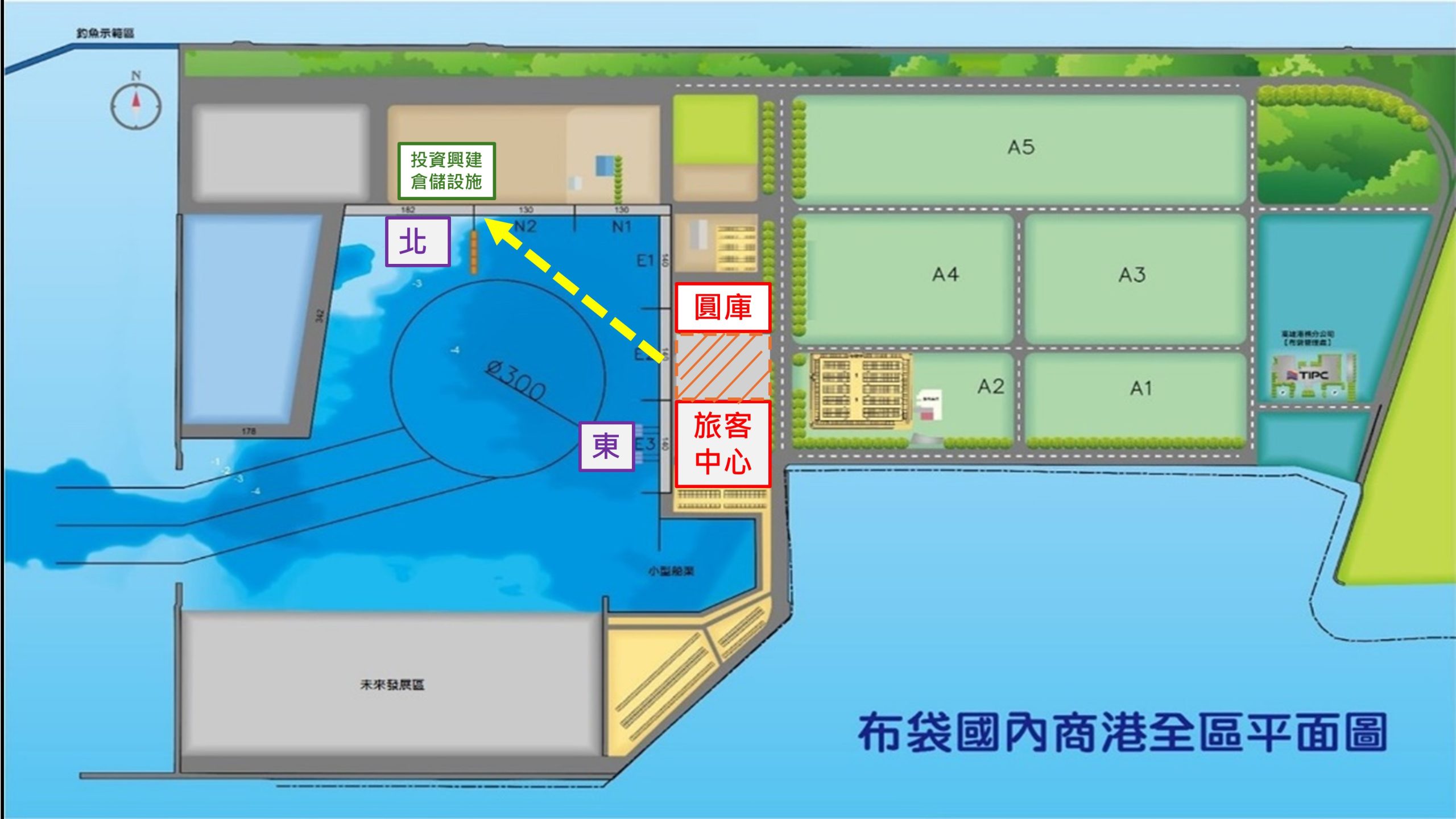 北碼頭區後線場地完成新建倉儲設施,東二碼頭將調整為客運服務區,招商引資,引進觀光休閒元素進駐。(港務公司提供)