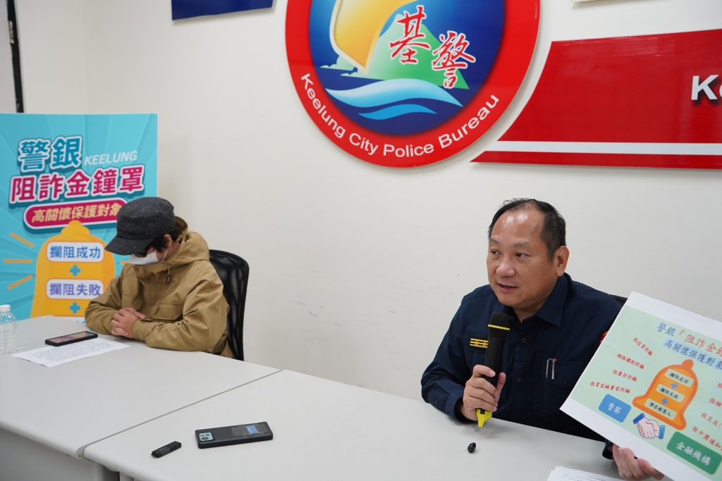 市警局自今年六月起,推動「阻詐金鐘罩|高關懷保護對象名單制」,制度上路以來,已有兩位民眾,分別於基隆郵局及基隆第一信用合作社再次臨櫃辦理交易時,經行員識破可疑情形並即時通報警方到場,成功攔阻四十六萬元。