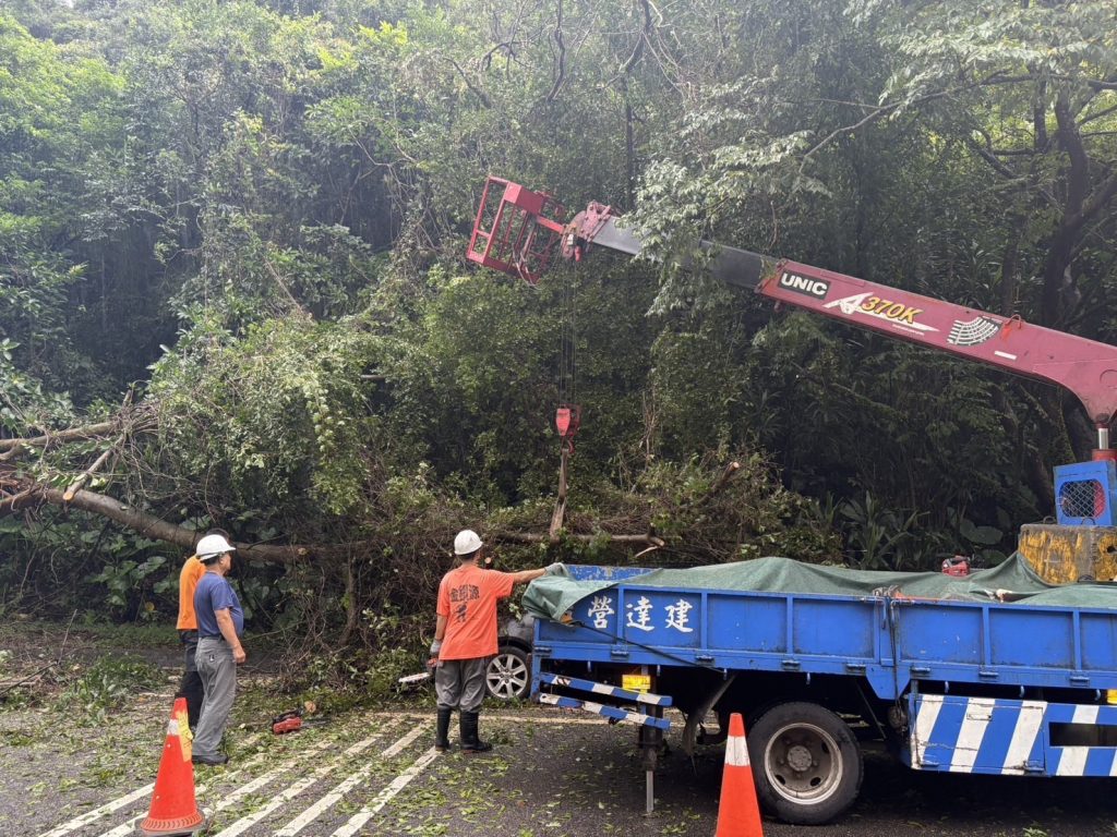 基隆安樂區基金一路往情人湖道路,強風吹倒路樹壓到車輛,轄區員警獲報到場,即刻排除,幸好無人傷亡。信義區孝東路也有路樹例塌,員警到場疏導交通。