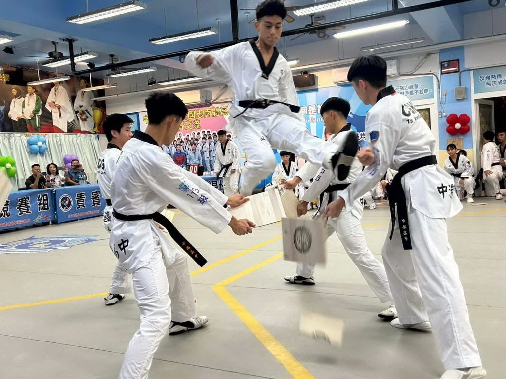 梧棲區跆拳道對戰品勢、擊破運動嘉年華會,昨日有台中市運動局科長黃湘賓、市政顧問朱光華、梧棲區農會總幹事吳柏慧、梧棲體育會理事長蘇濬雄、新任主任委員王經綻、中港高中校長簡★(左山右昆)鎰等出席,並由中港高中跆拳隊殺聲震天的精彩表演揭開序幕。