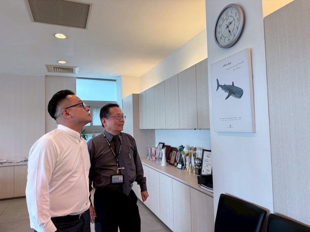 議長童子瑋前往國立海洋科技博物館參觀展區關心海洋教育推廣成果,並期許未來能進一步擴增海洋生物展區讓民眾近距離感受海洋生命的多樣性。(議長童子瑋辦公室提供)