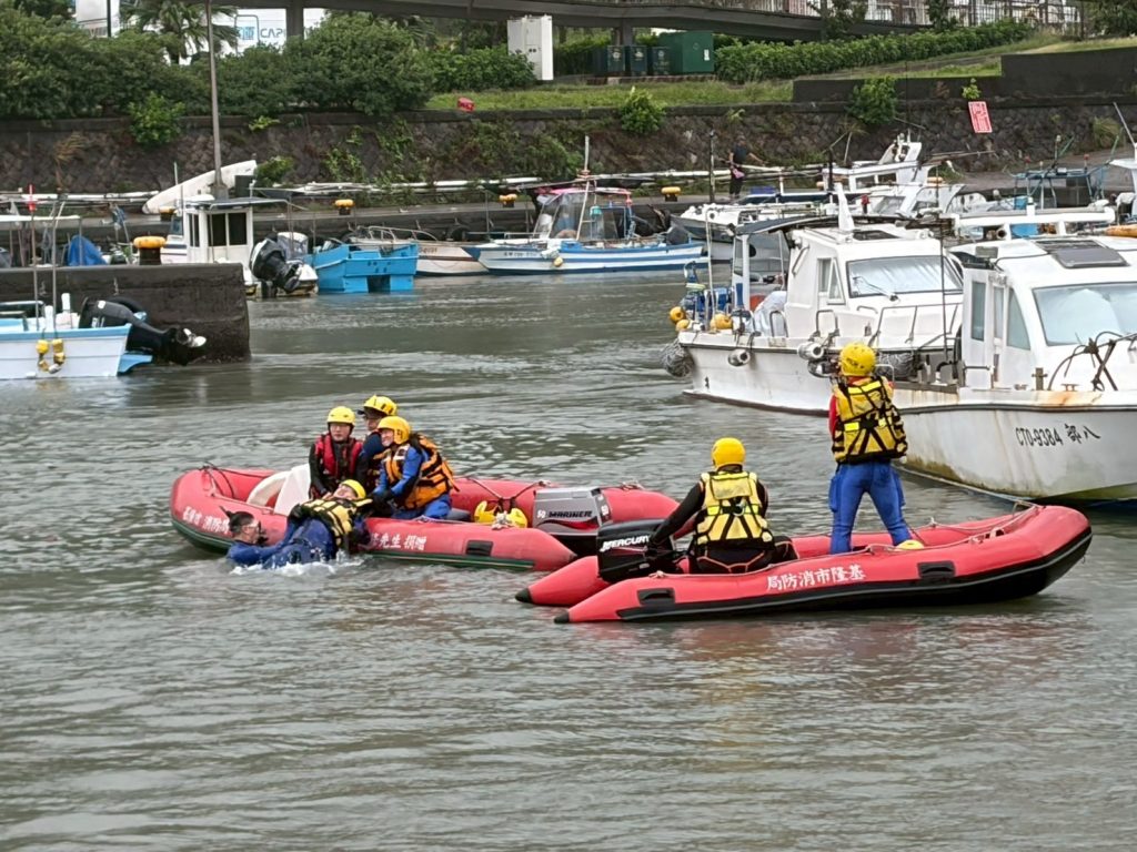 由於現場地形濕滑陡峭,消防人員須要穿戴頭盔、救生衣、防寒衣、潛水面鏡、蛙鞋及呼吸管等完整水域救援裝備外,更需要進行風險評估與安全檢核,以確保救援任務安全高效。中正救助器材車在望海巷岸邊吊掛船艇,由具專業潛水證照的消防人員駕艇出海,以利救援任務遂行。演練結束後,由第一大隊長許喬閔召集各單位,對搶救過程提出檢討與改進建議,精進高風險水域救援戰力。