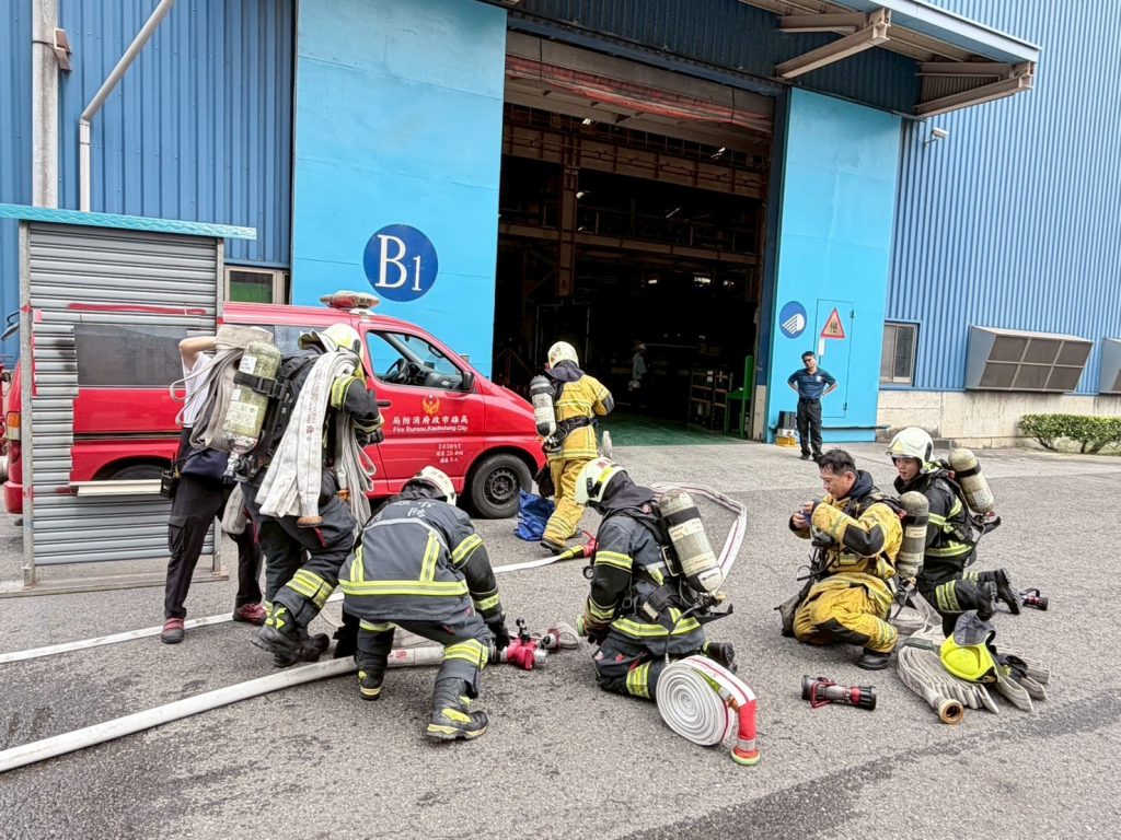 抵達現場後,消防隊與廠方救災資訊權並掌握受困人員的位置,隨即派遣搜救人員進入廠房內搶救,其他救災人員則同步佈署水線進行滅火攻擊及火場防護。同時,現場指揮官指派中隊及大隊幕僚負責救災人員管制、水源調度及整合現場資通訊,確保救災指揮體系順暢運作。