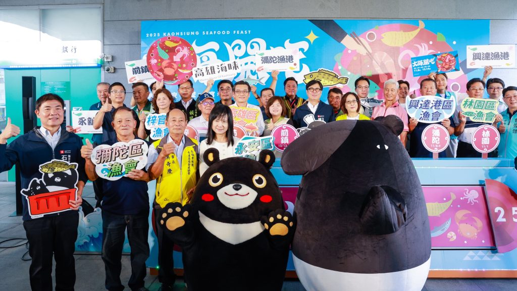 高雄市海洋局推出大海開吃系列活動,市長陳其邁卅日出席活動現場,與高雄熊、人氣 IP馬來貘及各區漁會代表共同揭開活動序幕,邀請民眾一同感受高雄海線的獨特魅力。