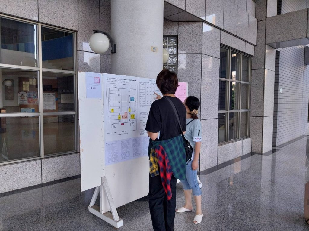 考場樓設置座位表供考生查詢示意。(航港局提供)