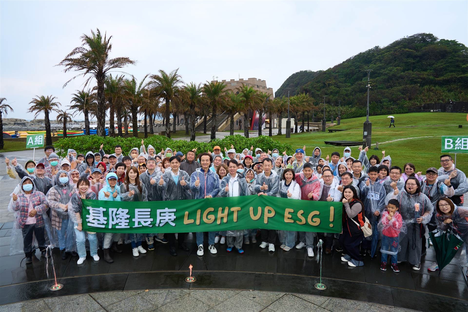基隆長庚秉持響應永續發展(ESG)理念,號召逾百名同仁前往基隆市和平島地質公園,發起「點亮永續之光Light Up ESG!」行動。(基隆長庚醫院提供)