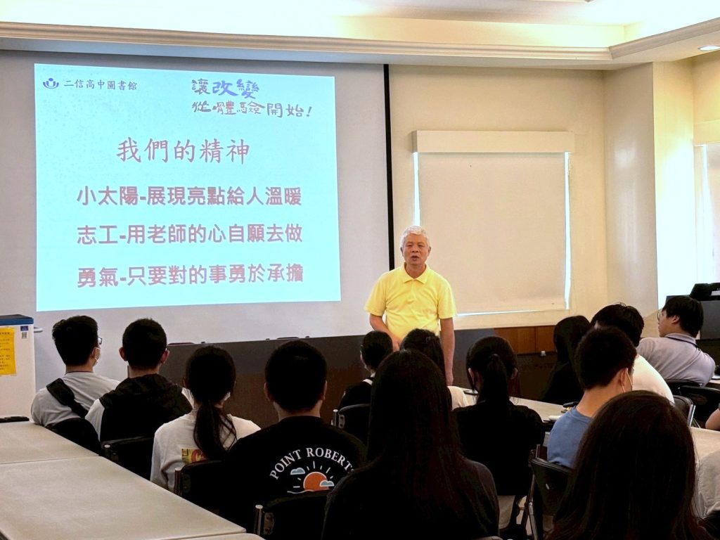二信高中圖書館舉辦「有愛關懷─生命課程體驗營」,結合志工培訓與生命教育體驗,引導學生在學習過程中實踐關懷與同理,培養以行動照亮社會的新世代志工。