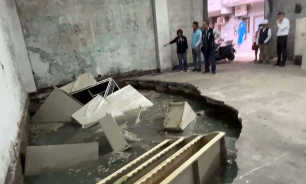 當地民治里長黃國偉表示,該地面出現大洞的屋主林先生上午十一時左右到當作倉庫的受損民房,才開門就發現倉庫深處出現一個面積約二十平方公尺的大洞,存放的辦公家具已掉落洞中,趕快通知里長,同時通報都發處,並邀議員等人到場會勘。事發後,區長陳錫洺已立即要求建商停工。
