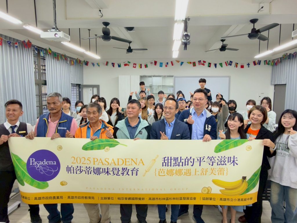 高雄市教育局、農業局與帕莎蒂娜國際餐飲集團、杉林社區發展協會20日在小港高中聯手推動年度校園味覺教育課程,今年以「甜點的平等滋味—芭娜娜遇上舒芙蕾」為主題,帶領學生從甜點製作走入食材產地、飲食文化與性別平權的多元學習現場。