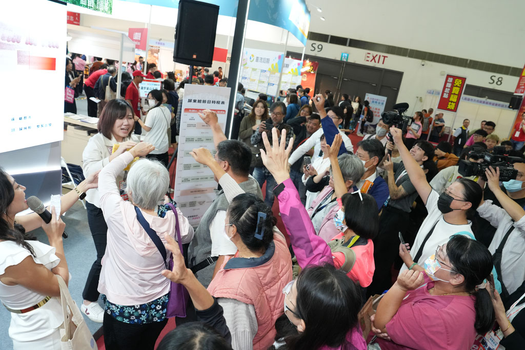 交通旅遊處表示,今年展館推出全時段「滿額抽獎」活動,民眾單筆消費滿699元、999元或1299元,即可依金額累計抽獎次數,買越多、抽越多,獎品包含屏東特色商品與精美禮品,吸引不少民眾參與。展期四天亦安排不同亮點活動,包括第二天人氣吉祥物「蔥寶蔥娃」帶動唱,現場熱鬧吸睛。