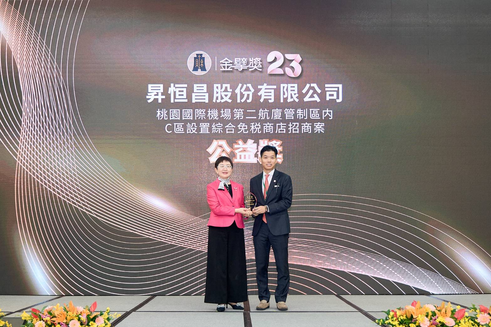昇恆昌免稅商店完成「桃園國際機場第二航廈管制區內C區設置綜合免稅商店招商案」,提升桃機國門形象、支持地方創生,深受肯定,榮獲由財政部主辦、譽為臺灣促參界奧斯卡獎的「金擘獎」特優,不僅是眾多受獎者中唯一獲得特優的團隊,也是唯一獲得公益獎的企業,更是四度榮獲金擘獎特優肯定,再度展現民間企業參與公共建設典範。