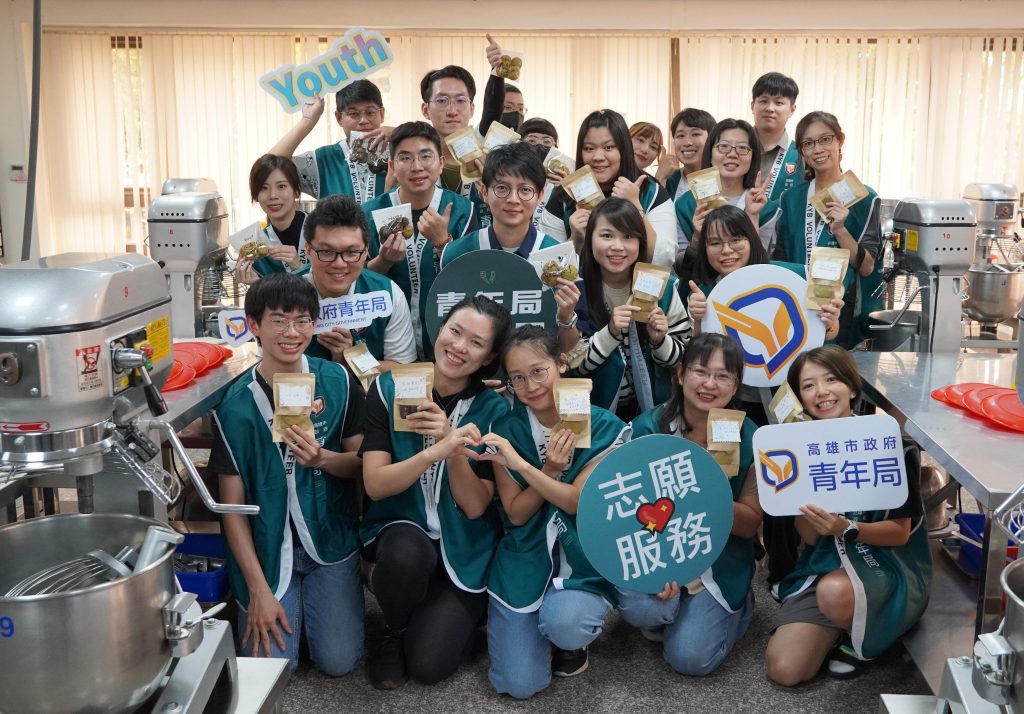 高雄市政府青年局響應12月5日國際志工日,舉辦「點心志工─幸福傳愛」活動,青年志工團化身學徒,在寒軒國際大飯店西點主廚的指導下親手製作兩款餅乾,並於活動後將成品送往南區家扶中心及鳳山區實物銀行,將關懷化為具體行動,為扶助家庭帶來溫暖支持。