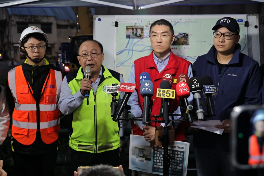 基隆市長謝國樑在碇內前進指揮所公佈,新增「濾芯更換費用」補助。(記者張上耕攝)