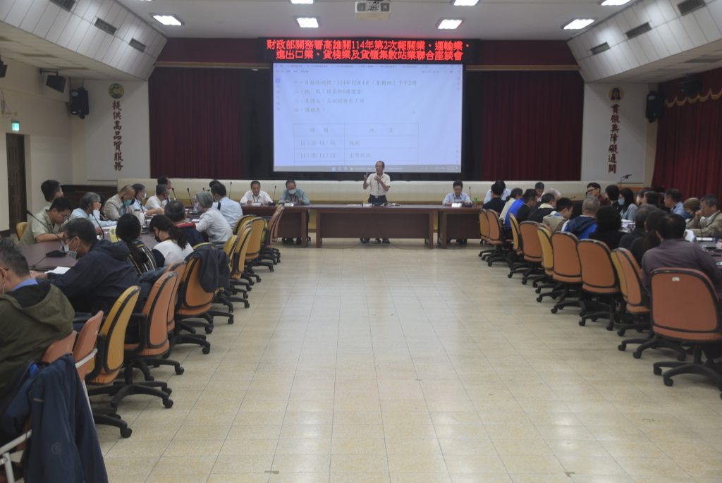 高雄關為促進通關便捷化,並深入瞭解相關業者實務作業需求,在該關關本部6樓禮堂,舉辦本年度第2次報關業、運輸業、進出口業、貨棧業及貨櫃集散站業聯合座談會。會議由副關務長高丁財主持,並偕同相關業務單位主管列席。出席業者有高雄市船舶日用品商業同業公會、高雄巿國際輪船商業同業公會、高雄市報關商業同業公會、高雄市船務代理商業同業公會、高雄巿航空貨運承攬商業同業公會、高雄巿倉庫商業同業公會、中華民國貨櫃儲運事業協會、台灣中油股份有限公司、關貿網路股份有限公司、農業部農業科技園區管理中心等約60人參加。會中就業者所提各項議題進行充分溝通及交換意見,深獲業者肯定。
