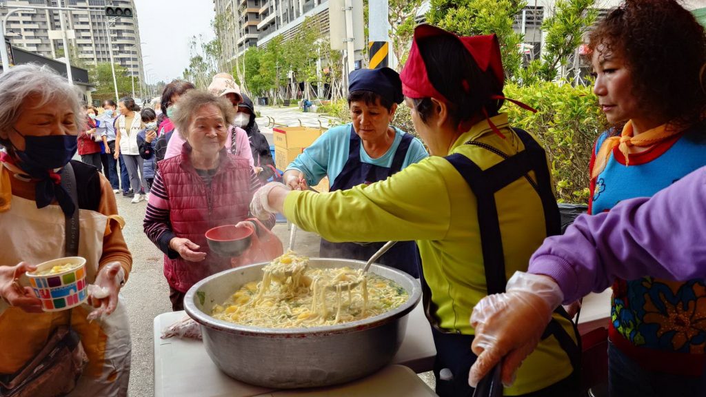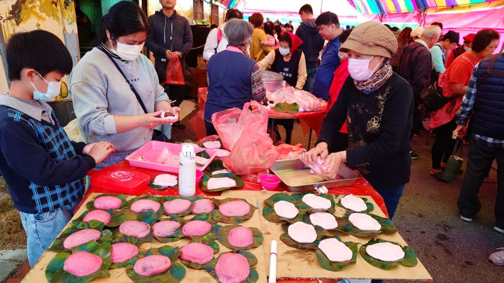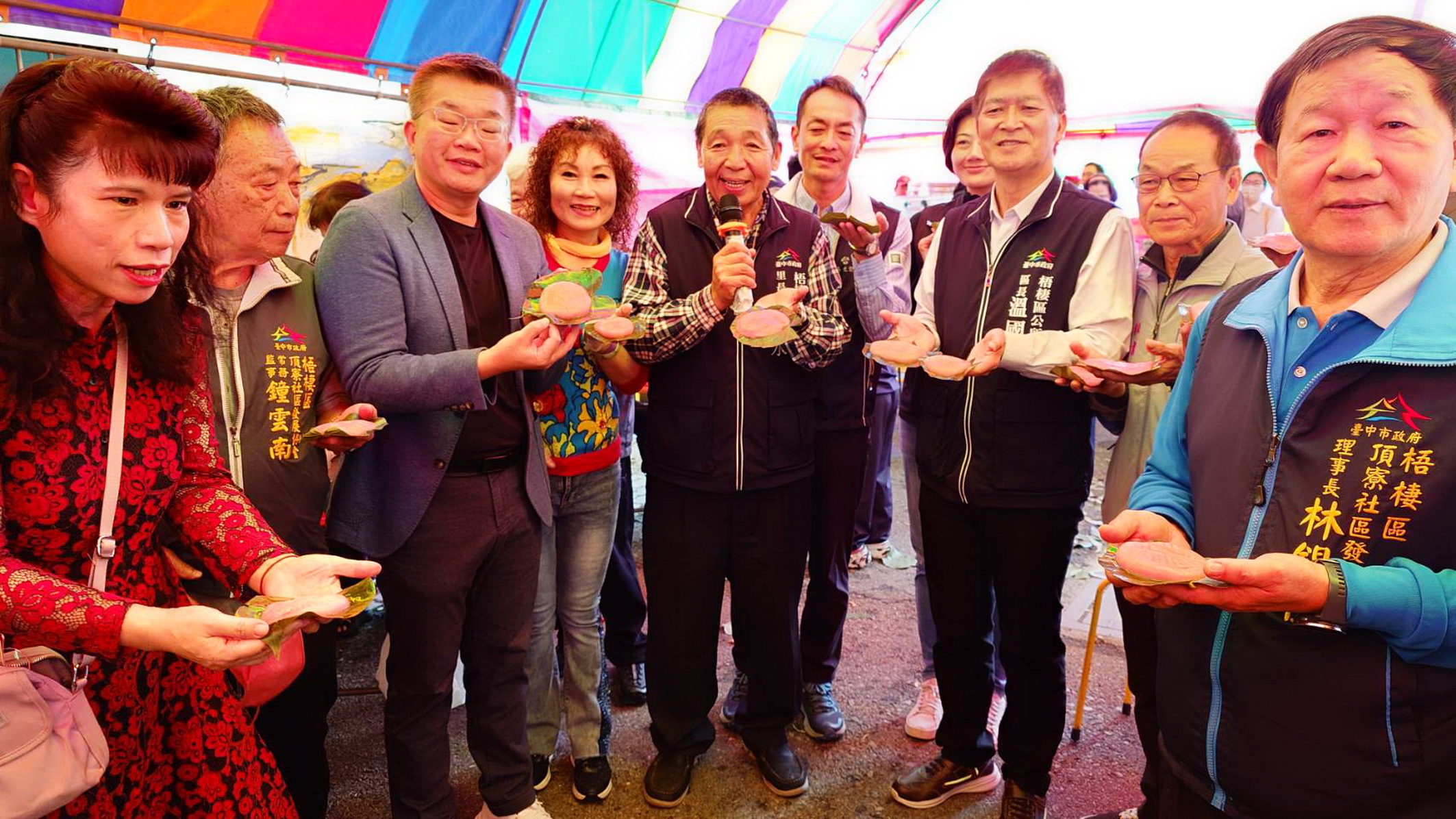 立委蔡其昌、梧棲區長溫國宏、市議員陳廷秀、頂寮里社區發展協會理事長林錫植等人也都前往參加,與大家一起同樂。溫國宏說,目前傳統的米食已經式微,要吃到傳統方式製成的米食已不容易。另外,現場還準備一千多份古早味番薯大麵羹美食,使用的香菜都是社區志工栽種的有機蔬菜,免費供民眾吃到飽,吸引民眾大排長龍大快朵頤,場面熱鬧。