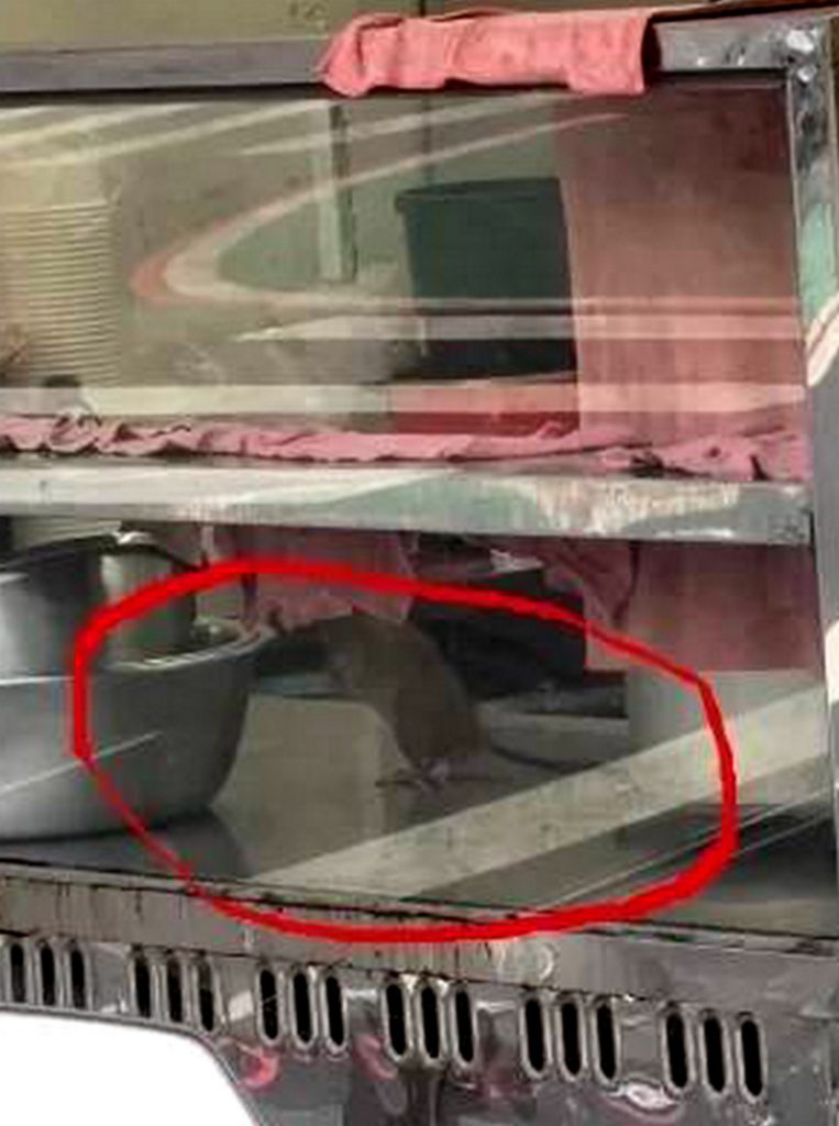 台中市學士路一家便當店被人拍到櫥櫃內竟有大隻老鼠在跑動,似在找食物。台中食品藥物安全處十四日表示,已錄案並將前往稽查,若查獲不符合食品良好衛生規範準則項目,將要求業者限期改善,複查若仍不合格,依法可處六萬元以上、二億元以下罰鍰。