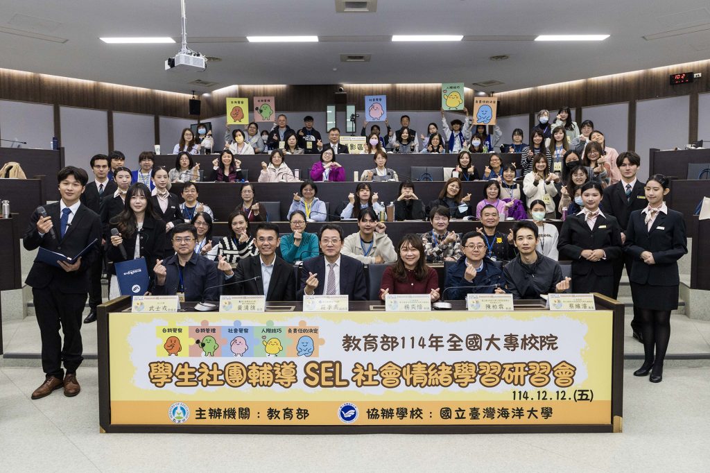 台灣海洋大學承辦教育部全國大專校院學生社團輔導SEL(社會情緒學習)研習會,聚集全國各校約八十位學務工作主管及社團輔導老師,透過專題演講、SEL五感體驗課程與實務案例分享,探討如何培養學生的自我覺察、情緒管理、社會覺察、人際互動及負責任決策等五大核心能力,期望有效提升學生的情緒管理,並帶動他們應對未來挑戰的關鍵能力。