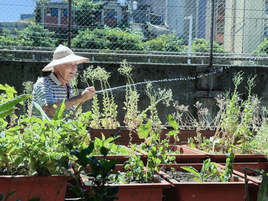 新建社區照顧關懷據點位於基隆火車站鐵道旁、國道一號起點高架橋下,從民國九十六年起由一群熱心志工在鐵道旁小角落打造長輩最溫暖的第二個家。社區理事長簡秀月表示,感謝志工陪伴社區度過二十個年頭,把閒置畸零地變成3D彩繪廊道,讓原本灰暗的街角成為觀光客打卡秘境。來到據點參加活動的長者在國道高架橋下開闢開心農場,用自己的雙手種下健康與希望。
