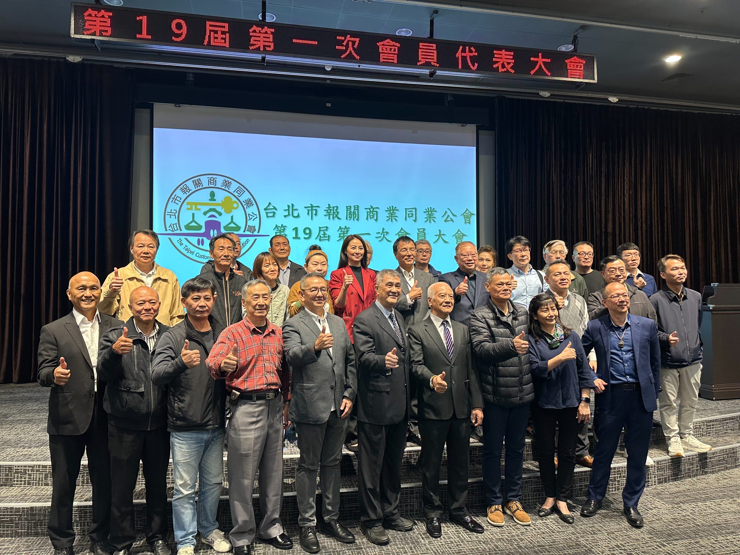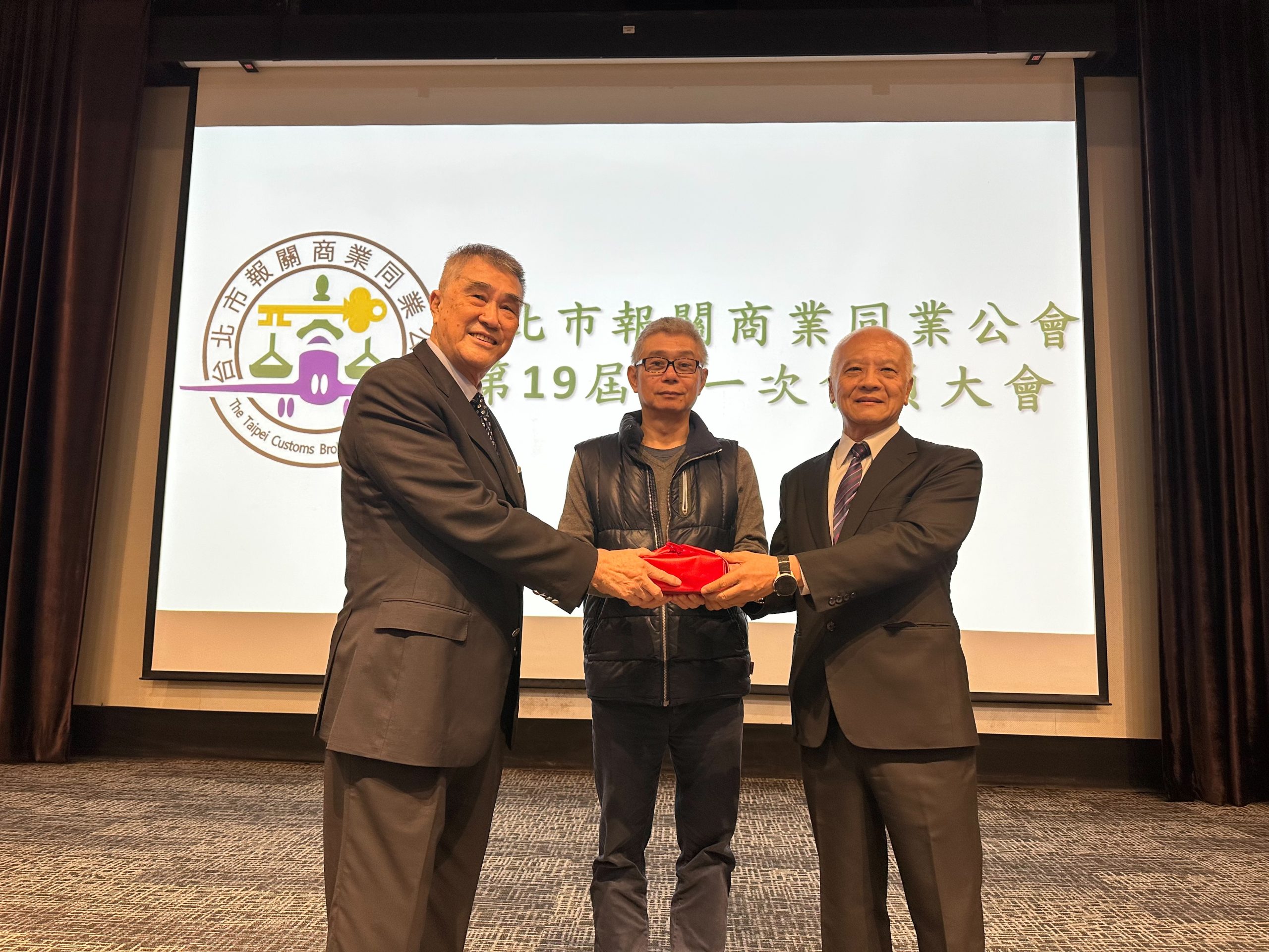 台北市報關公會二十四日舉行第十九屆第一次會員代表大會,會中進行第十九屆理、監事、常務理、監事及理事長改選。選舉結果由高振明高票當選理事長,隨即舉行印信交接儀式,由原任理事長陳坤龍將印信交接予新任理事長高振明。