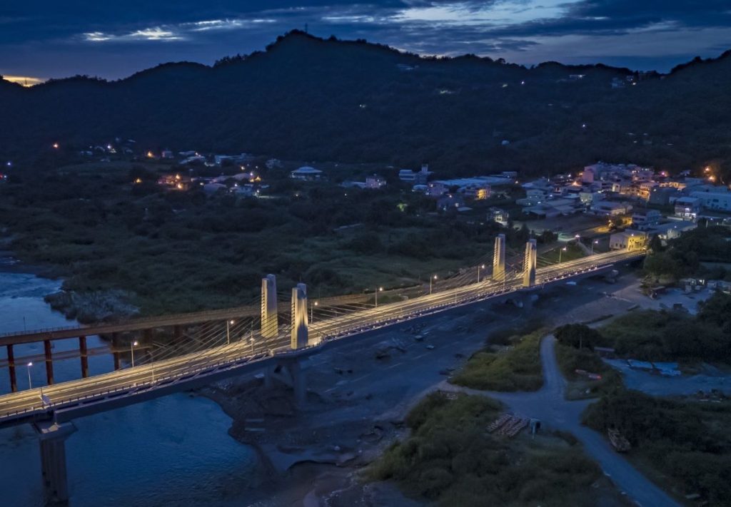 東勢埤豐橋改建工程設置夜間燈光,與夜幕搭配成為地方夜景。(記者楊文琳翻攝)