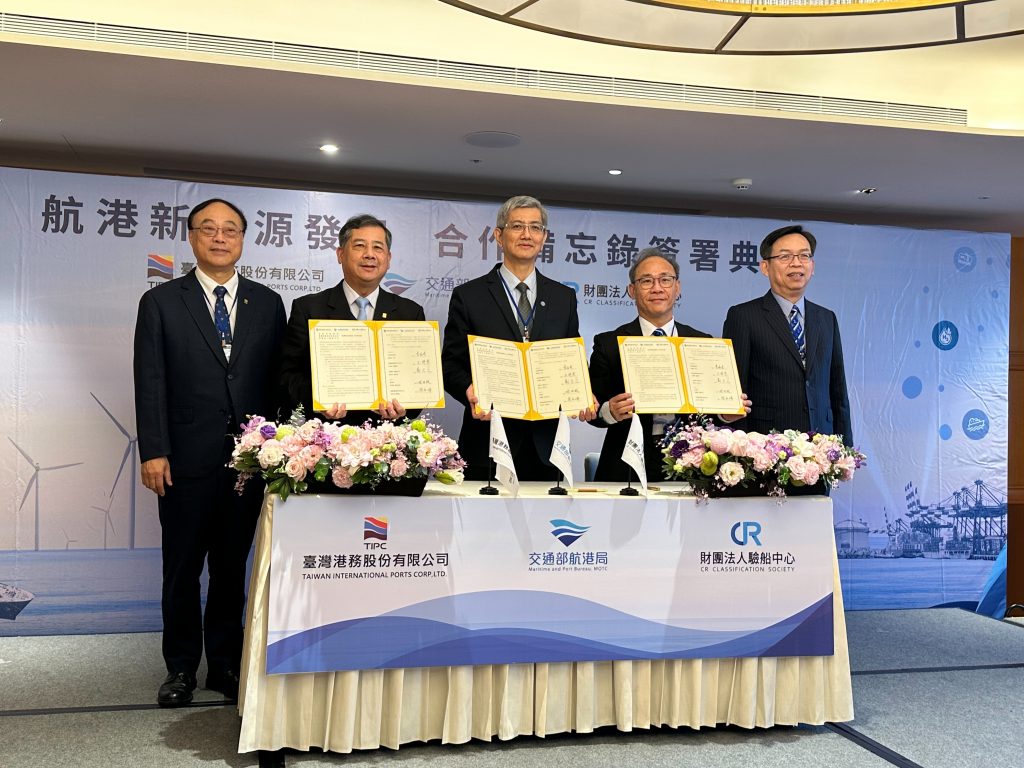 交通部航港局、臺灣港務股份有限公司(下稱港務公司)、財團法人驗船中心(下稱驗船中心)30日於JR東日本大飯店台北,共同簽署航港新能源發展合作備忘錄,以因應全球航運產業邁向淨零碳排的潮流,並彰顯我國在航運與港口新能源發展領域的轉型決心與前瞻布局,