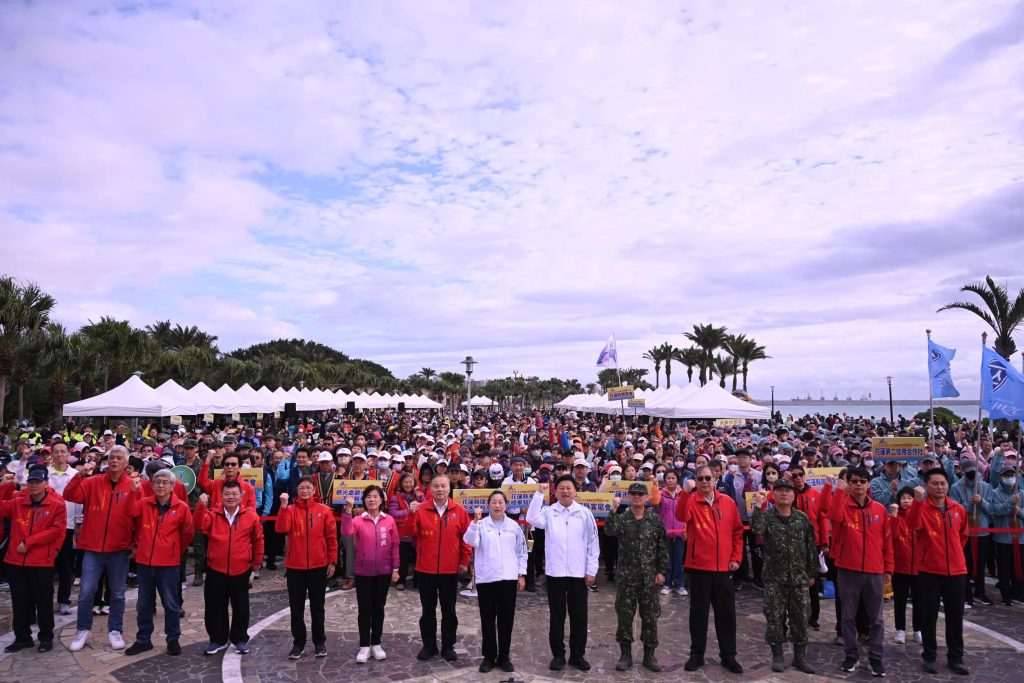 花蓮縣政府一日在花蓮太平洋公園舉辦「萬馬奔騰迎好年健走together、健康forever」元旦健走暨升旗活動。(花蓮縣政府提供)