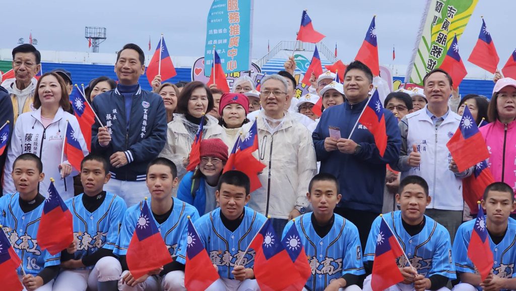 宜蘭元旦升旗除了縣長侯選人到場外,還邀請羅工棒球隊唱國歌。(記者張正量攝)