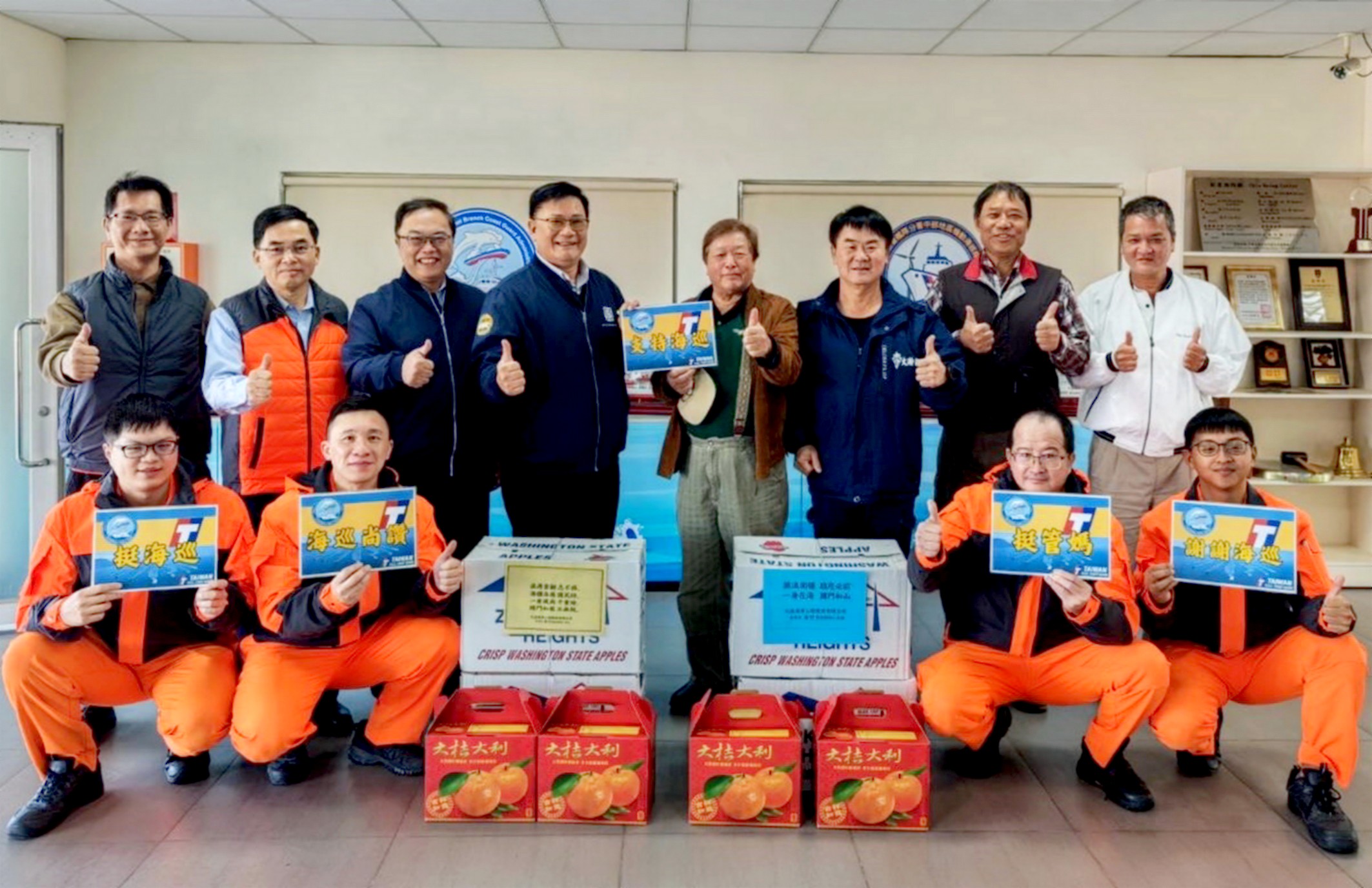 近日中國軍演頻擾台灣周邊海域,海巡不分晝夜捍衛主權,為感謝海巡同仁長期以來在海域執法、海事服務及救生救難等任務不遺餘力的付出與辛勞,大漢海事工程公司董事長黃竹及海巡之友艦隊分會副會長白崇賢等人,四日前往台中港海巡基地表達感謝之意。