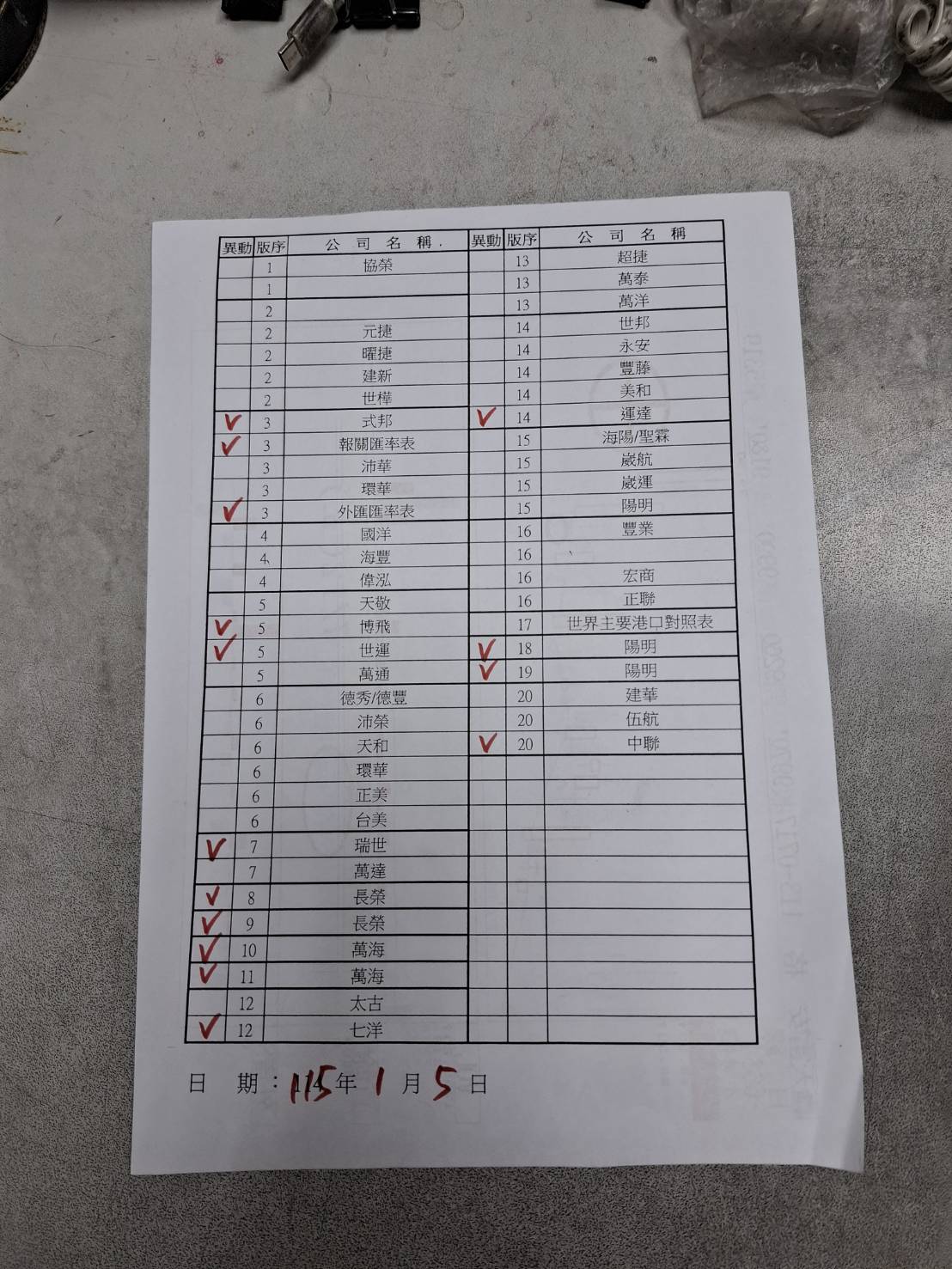 航運船期表 七洋聯運股份有限公司20260106 2026-01-06 七洋聯運股份有限公司20260106 Previous article博飛國際股份有限公司20260106Next article中聯航運20260106 航運船期表 海陽/聖霖船務代理2026.01.09 2026-01-09 0 海陽/聖霖船務代理2026.01.09 長榮海運01-2026.01.09 2026-01-09 0 長榮海運01-2026.01.09 航運新聞 航運新聞 長榮海運去年累計合併營收為3790.44億元 2026-01-09 0 記者陳... 航運新聞 永聯物流開發獲CLI策略性投資擴大全亞太智慧物流版... 2026-01-09 0 記者李&... 近期新聞 航運新聞 MSC開啟青島港-澳洲直航新航線年櫃量突破300萬... 基隆 基隆幼兒劇場體驗 看戲學SEL情緒教育 高雄 守住壽山動物園孟加拉虎 邱志偉促及早啟動繁殖規劃 航運新聞 港務公司周永暉董事長傾聽業者心聲 推動貨櫃與散雜貨...