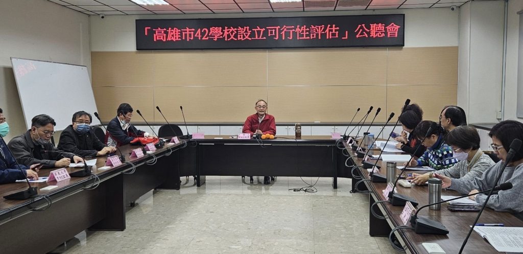 高雄市議會六日舉辦「高雄市42學校設立可行性評估」公聽會,由黃柏霖議員主持,與會學者認為市府可以提供場地,鼓勵企業發揮社會責任進行投資,培養人才,使學校具財務永續性。