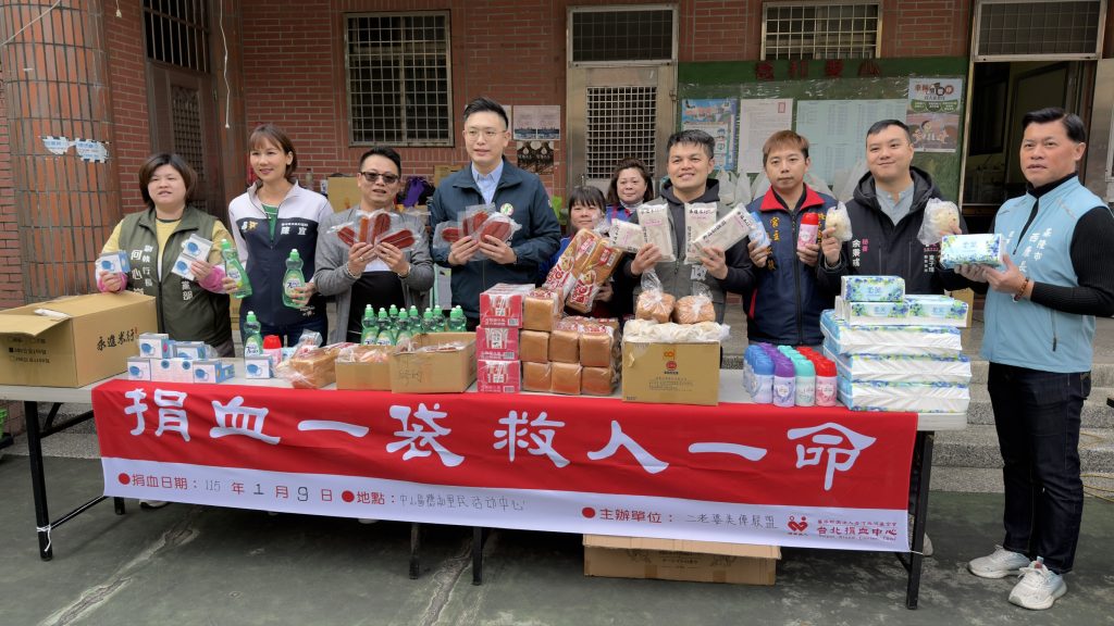 由於天氣寒冷,捐血的民眾相對少,北部地區最近缺血嚴重。二老婆美車聯盟和市議員施偉政、張顥瀚與陳宜等,九日上午在中山區德和里民活動中心舉辦「將愛遠傳」的捐血活動。由於非假日,主辦單位向全聯及善心人士募集許多物資,其中有一百片烏魚子。