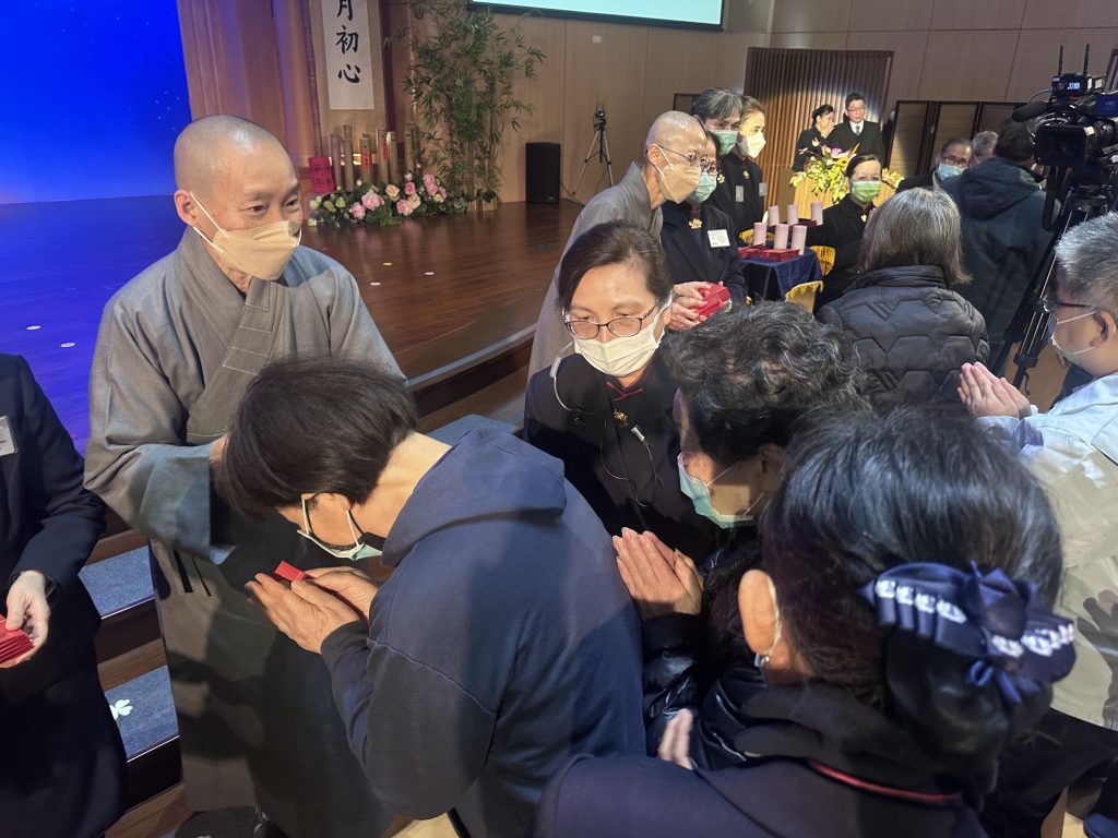活動尾聲,現場會眾排隊領取上人致贈的「福慧紅包」,這份承載善念與祝福的紅包自一九九0年(民國七十九年)起,將靜思語版稅轉化為不同年份的福慧紅包,象徵上人與慈濟人長年不變的願行。邱佩琳也提醒大家,這是一份會「發酵」的紅包,期盼大家將善念延續,讓愛與祝福成為世代相傳的珍貴傳家寶。