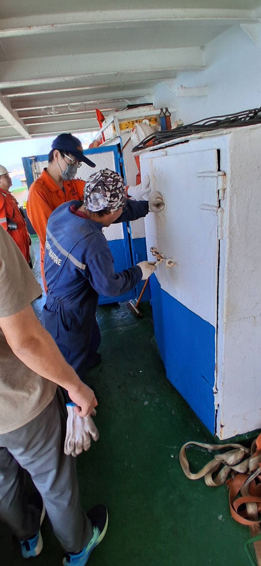 高雄關表示,為防堵高雄港區偷渡、走私不法情事發生,該關與高雄港務警察總隊、移民署、海巡署及調查局等相關單位,共同執行船舶抄查,協同發揮行政管制力量,展現守護國門決心。