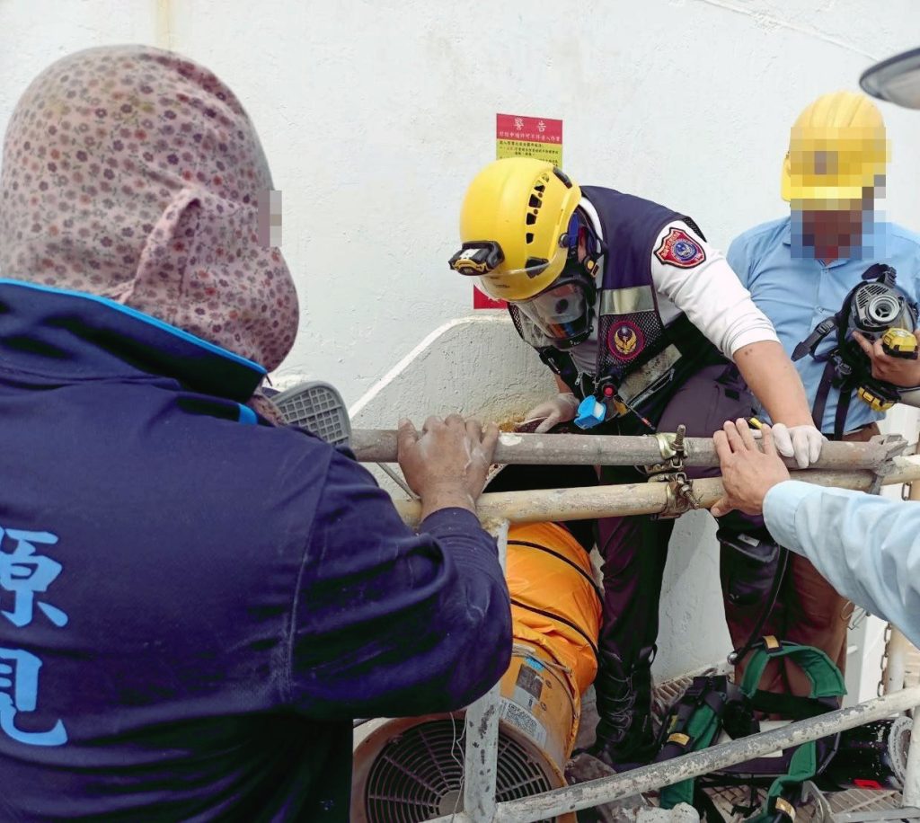 高雄市消防局一一九救災救護指揮中心係於今(16)日午間12時許,獲報林園區石化一路的台塑林園廠包商工人於PVC儲槽從事油漆作業時,疑似通風不良造成身體不適受困;立即派遣13車26人前往搶救,消防人員到場後確認有3名工人受困,立即穿戴空氣呼吸氣著裝入內搶救,陸續於12時42分救出分別58歲、52歲、39歲3名受困男性工人,所幸均意識清醒沒有受傷,由救護人員處置後送醫檢查。