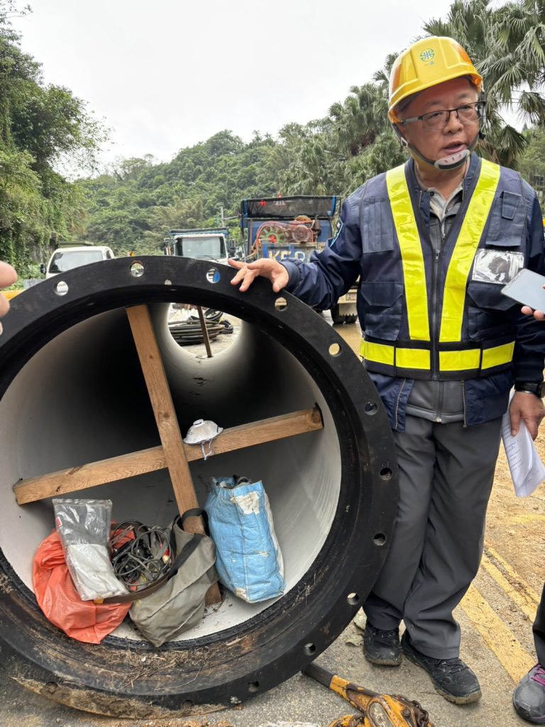 水公司一區處長張子中說,麥金路下方埋設四支混凝土水管,其中二支口徑一點二公尺,輸送八堵抽水站的原水到淨水場,二支口徑一公尺,輸送到自來水用戶。十五日晚發現麥金路面滲水,開挖發現其中一支送水管破裂,立即停止輸水搶修。現場開挖地下管線複雜,經與工程人員討論後,緊急變更工法,改用全墨式不鏽鋼管,焊接取代鎖螺絲,以防後患,但延長施工時間。