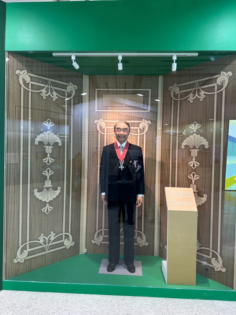 特展中首度對外公開張總裁生前委由已故知名蠟像大師林健成精心製作的等比例蠟像,還原呈現張總裁於2006年獲頒「大英帝國司令勳章」的神情與風采,栩栩如生。(記者陳瓊如攝)