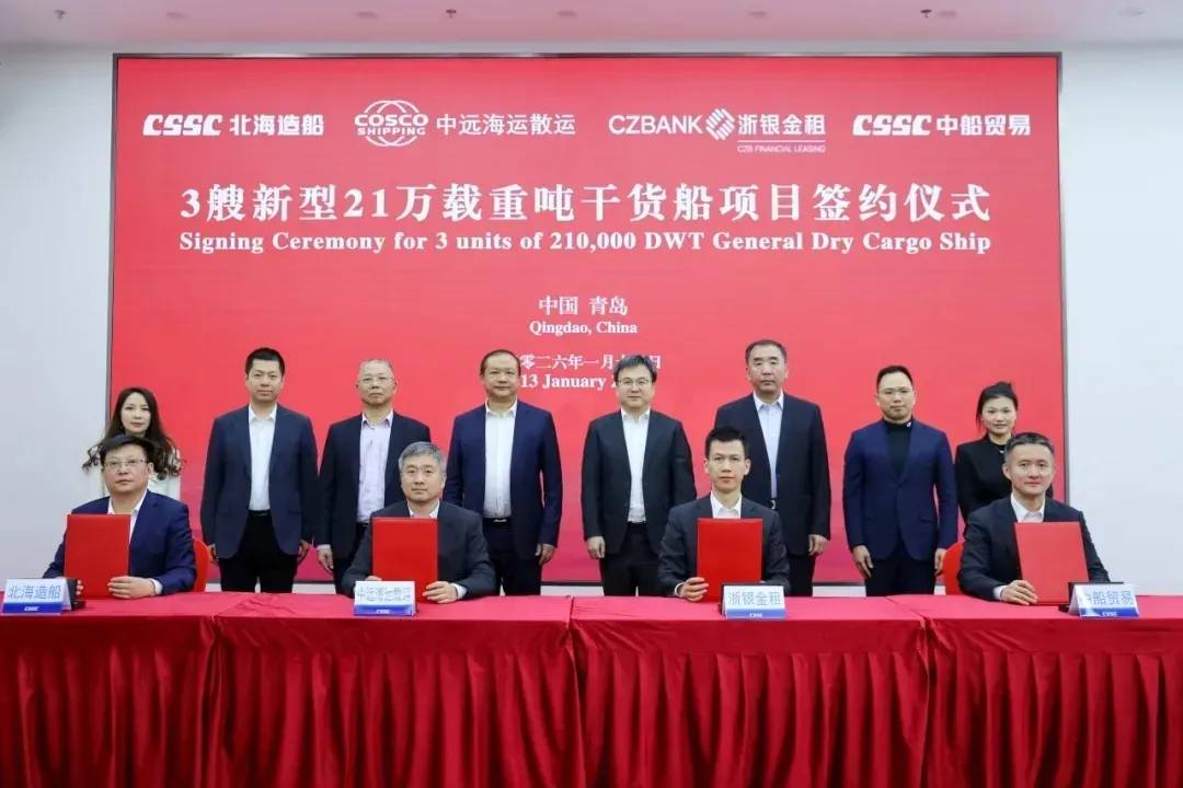 中遠海運散運係與北海造船、中船貿易、浙銀金租簽約三艘新型21萬噸級乾貨船,與傳統紐卡斯爾型主要跑大宗散貨不同,這批新船強調兼具散貨、件雜貨及貨櫃裝載能力,更便於在特定貿易走廊“雙向貨源”:回程不只靠壓載或單一貨種,而是有機會通過工程設備、鋼制構件等專案貨提升返程裝載率與綜合收益。