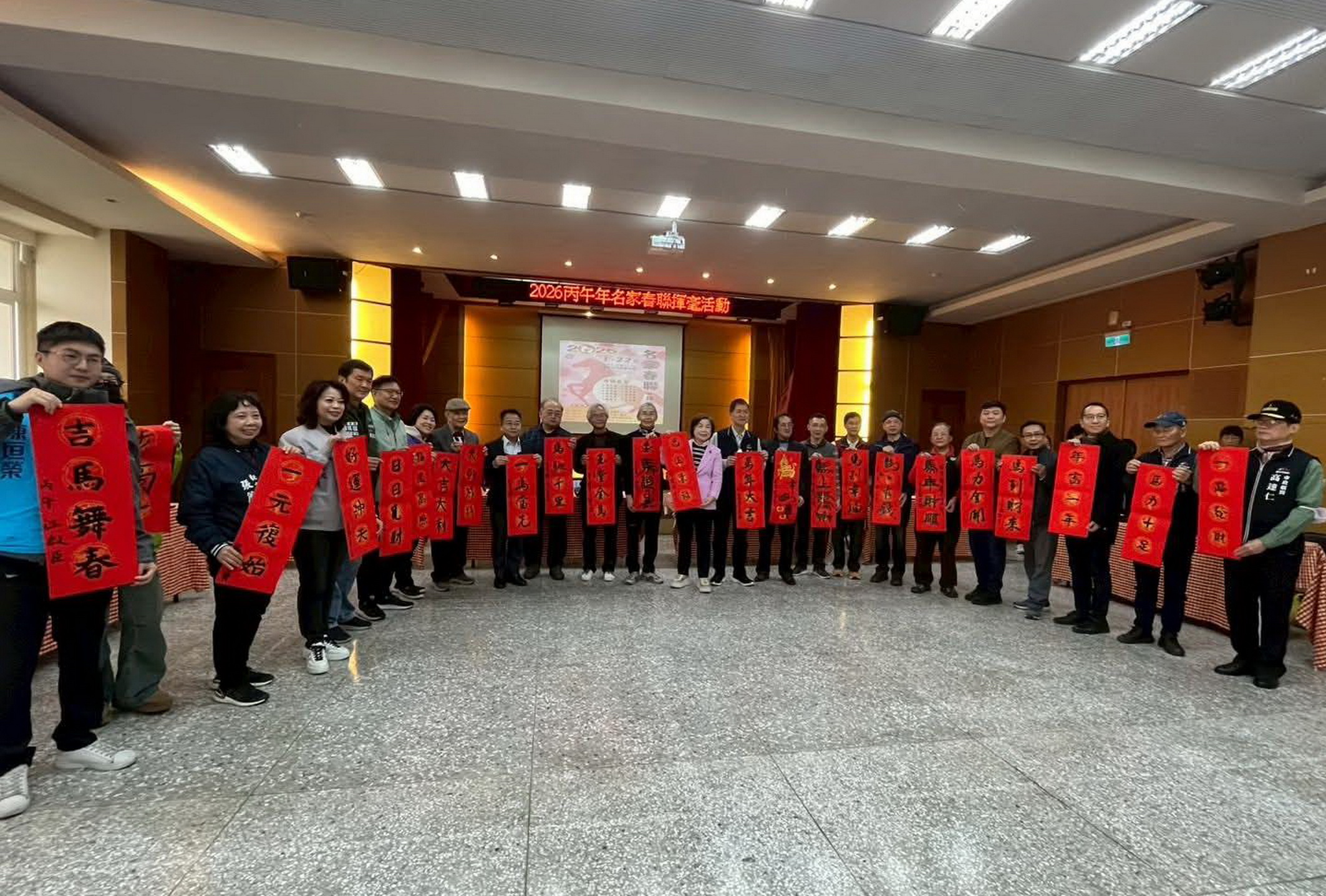 為喜迎丙午金馬年到來,台中市梧棲區公所舉辦春聯揮毫活動,現場喜氣洋洋,吸引了不少民眾前來參與,讓大家在充滿年味的氛圍中,提前感受到春節的喜慶與祥和。
