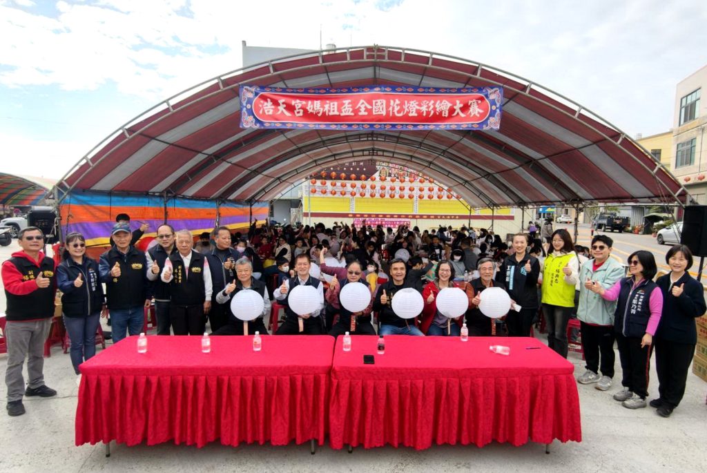 台中市梧棲區大庄浩天宮為迎接即將到來的元宵佳節,二十五日首度舉辦「浩天宮媽祖盃全國花燈彩繪大賽」,共吸引全國各地五百三十組隊伍、約一千五百名親子家庭與學生齊聚梧棲,現場氣氛熱絡。民政局長吳世瑋代表市長盧秀燕出席表示,感謝浩天宮推廣傳統民俗與在地文化,期盼參賽者揮灑創意,將節慶與信仰意象化為花燈作品,展現藝術之美,也讓民眾在創作中感受元宵文化魅力。